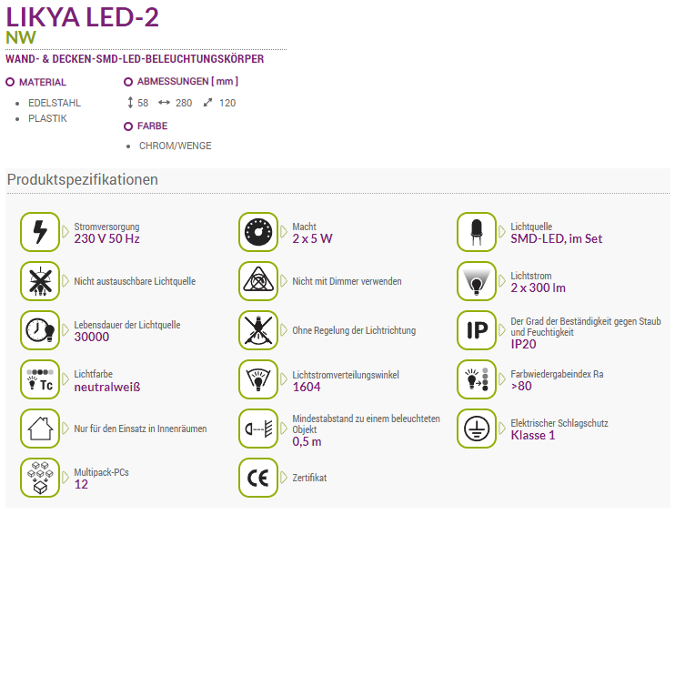 Wand- und Decken-SMD-LED-Leuchte-Likya LED 2
